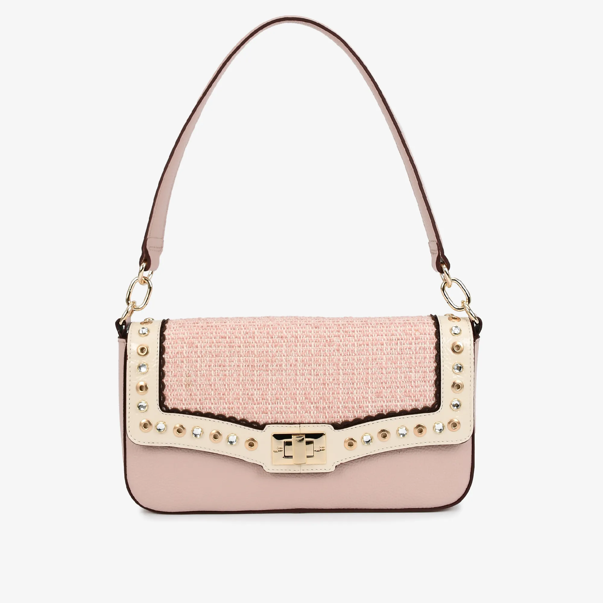 A bolsa baguete Jorge Bischoff em tom rosé é a tradução perfeita de delicadeza com personalidade. Confeccionada em couro floter fresh e tweed rosé, ela combina textura, brilho suave e feminilidade em uma peça super atual. O detalhe em recorte com aplicações metálicas douradas adiciona charme e modernidade, enquanto o fecho com giro traz aquele toque clássico que nunca sai de moda. Compacta, elegante e cheia de estilo, é a escolha ideal para completar looks do dia ou da noite com sofisticação leve e impecável. Ideal para quem ama peças românticas, marcantes e atemporais.